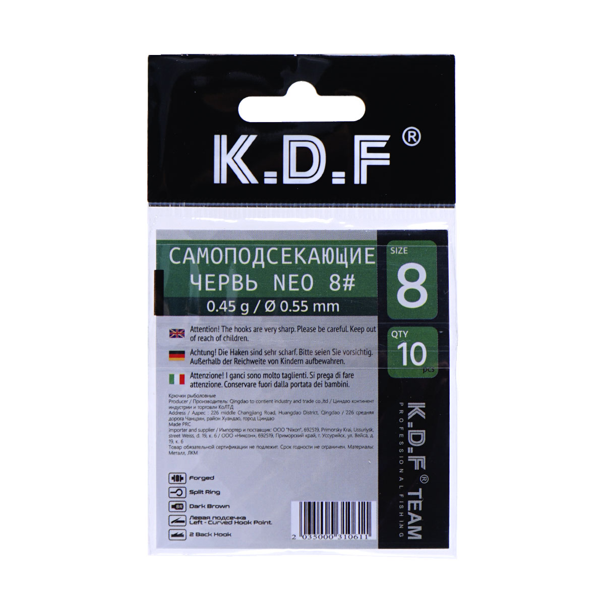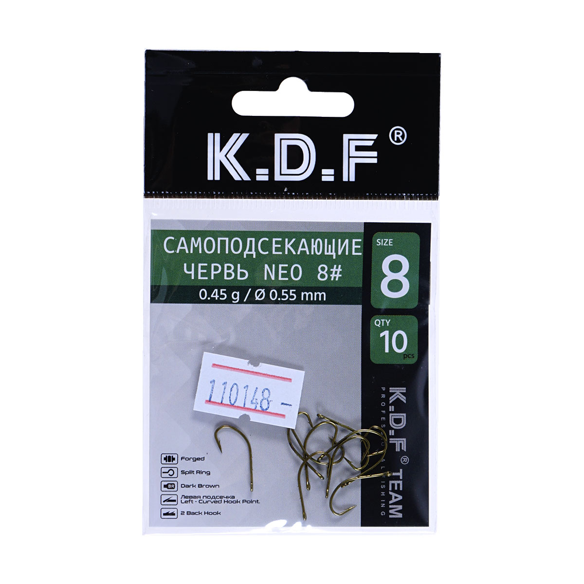 Крючки одинарные самоподсекающие KDF Червь Neo №8 (10шт)