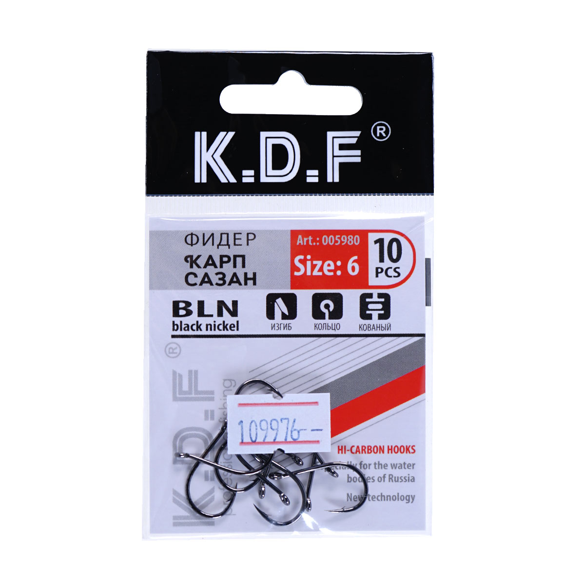 Крючки одинарные KDF Фидер Карп Сазан №6 (10шт)
