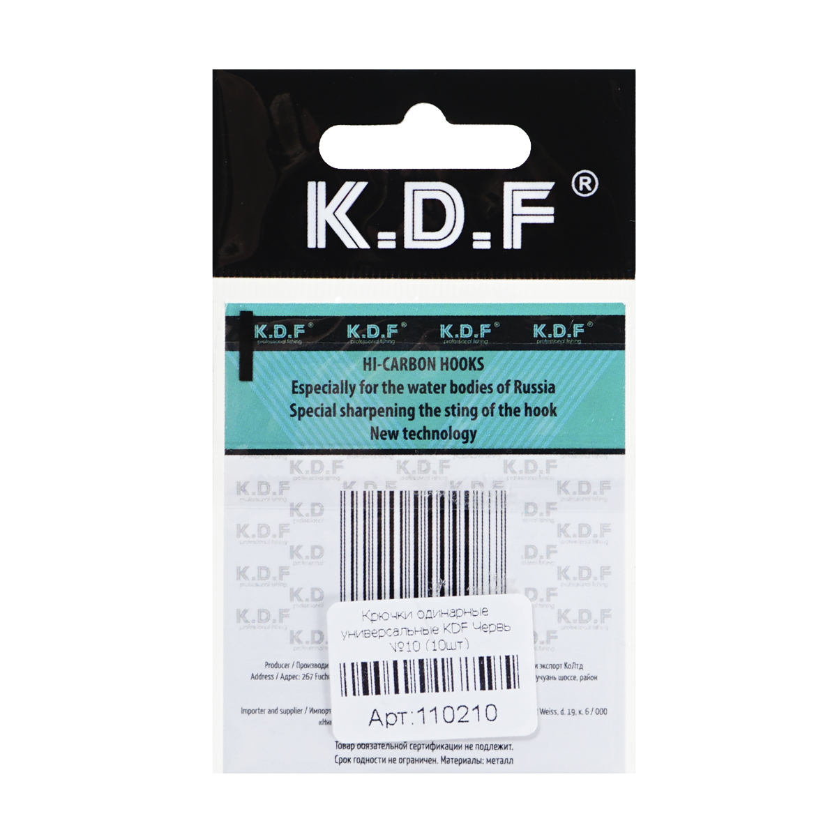 Крючки одинарные универсальные KDF Червь №10 (10шт)