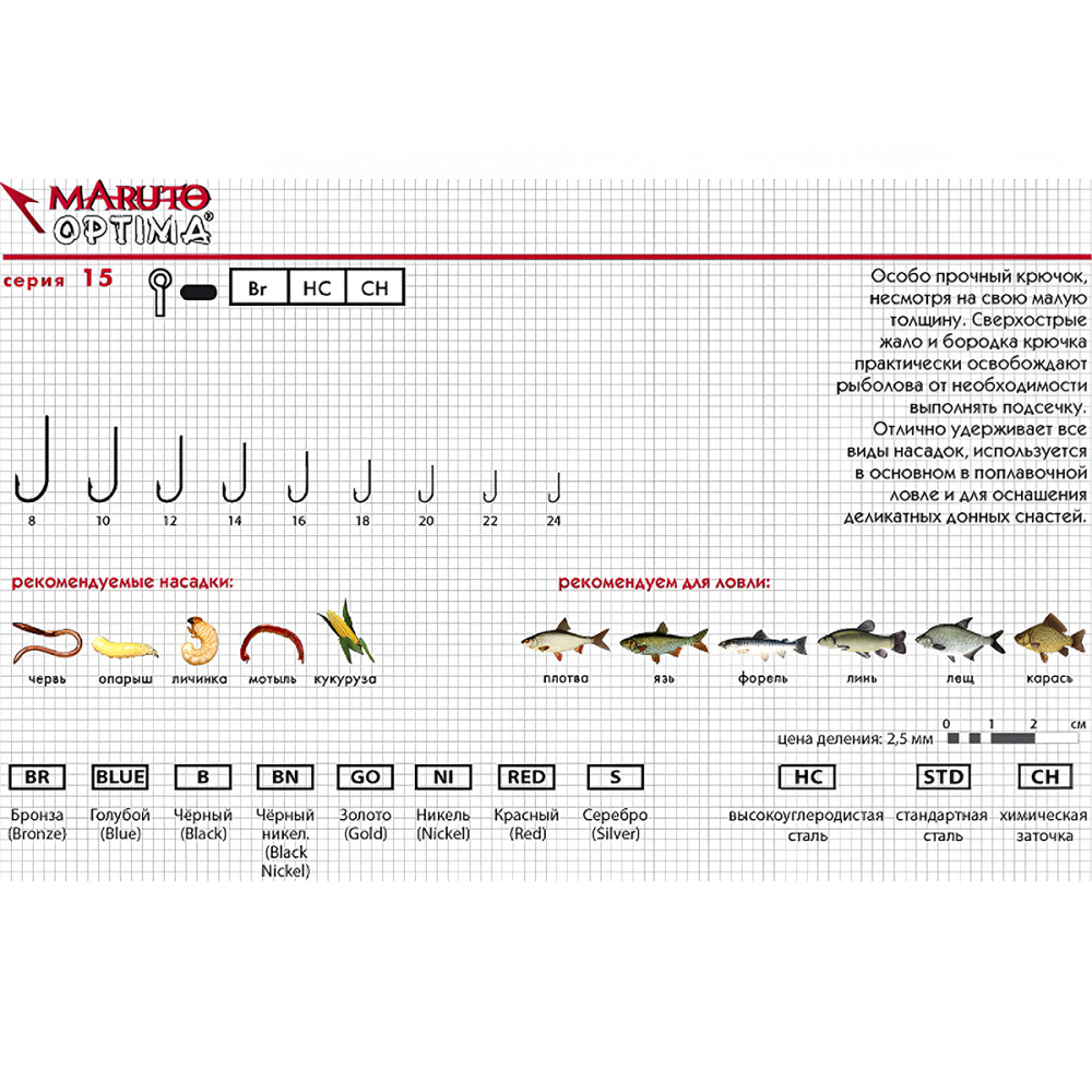 Крючки одинарные Maruto Optima 1562 BR №8 (6шт)