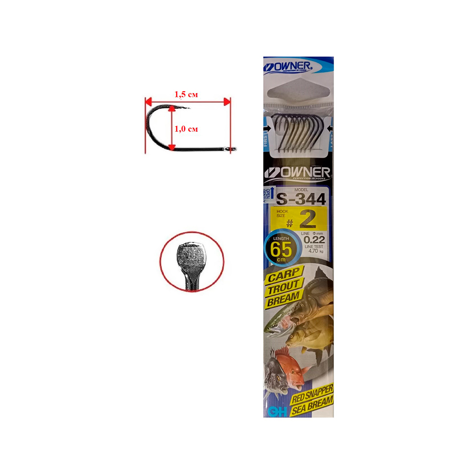 Крючки одинарные Owner S-344 (56913) Black на поводке №2 (8шт)