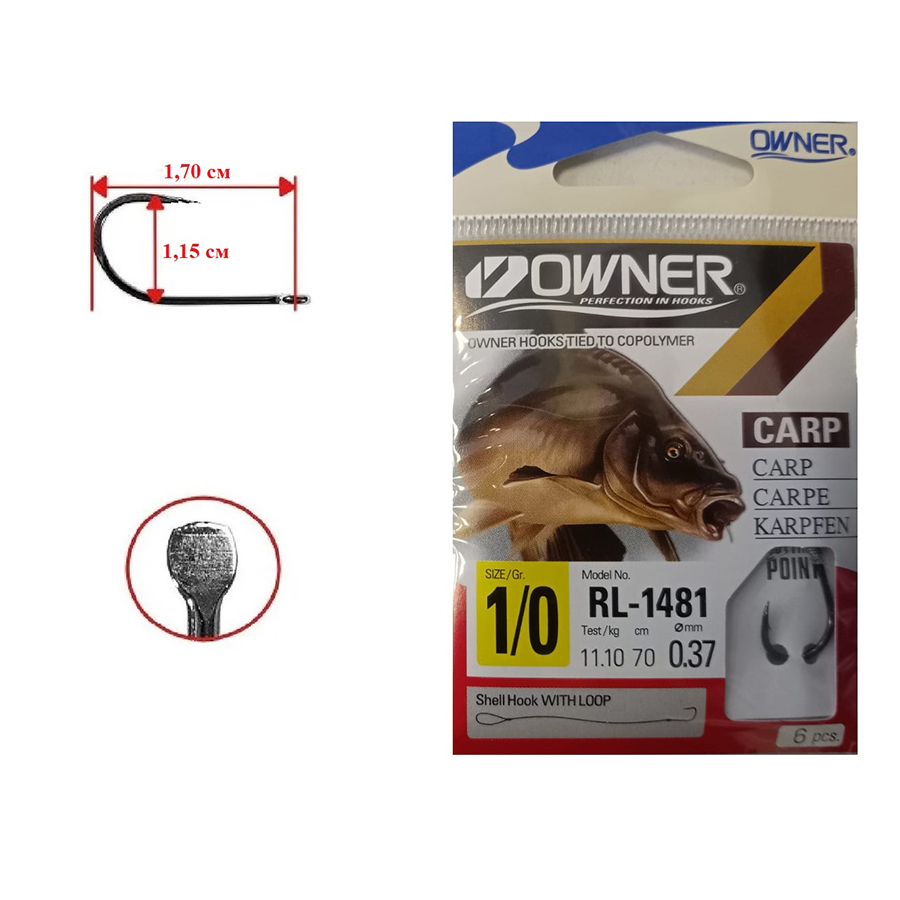 Крючки одинарные Owner RL-1481 (53818) на поводке №1/0 (6шт)