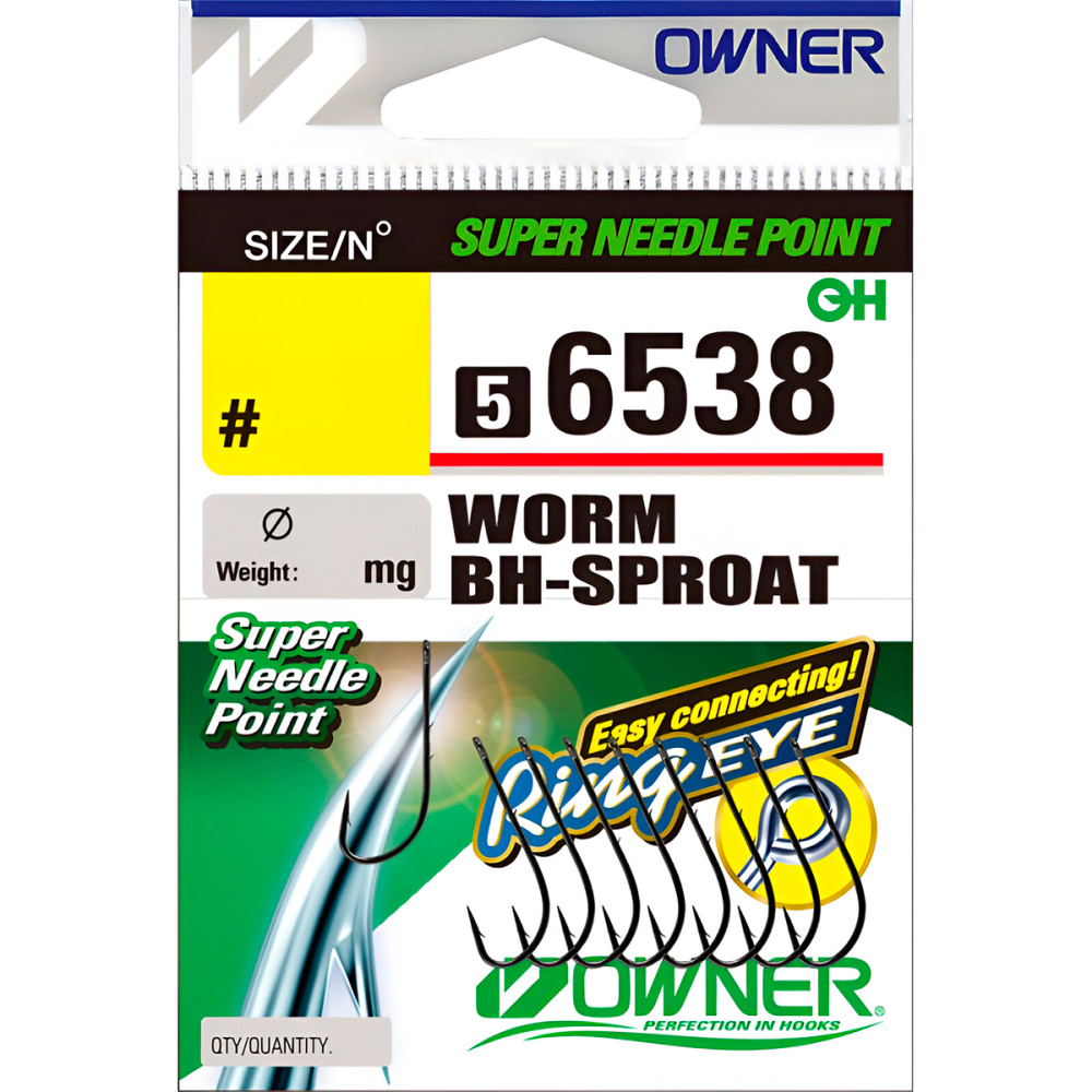 Крючки одинарные Owner 56538 Worm BH-Sproat BC №6 (9шт)