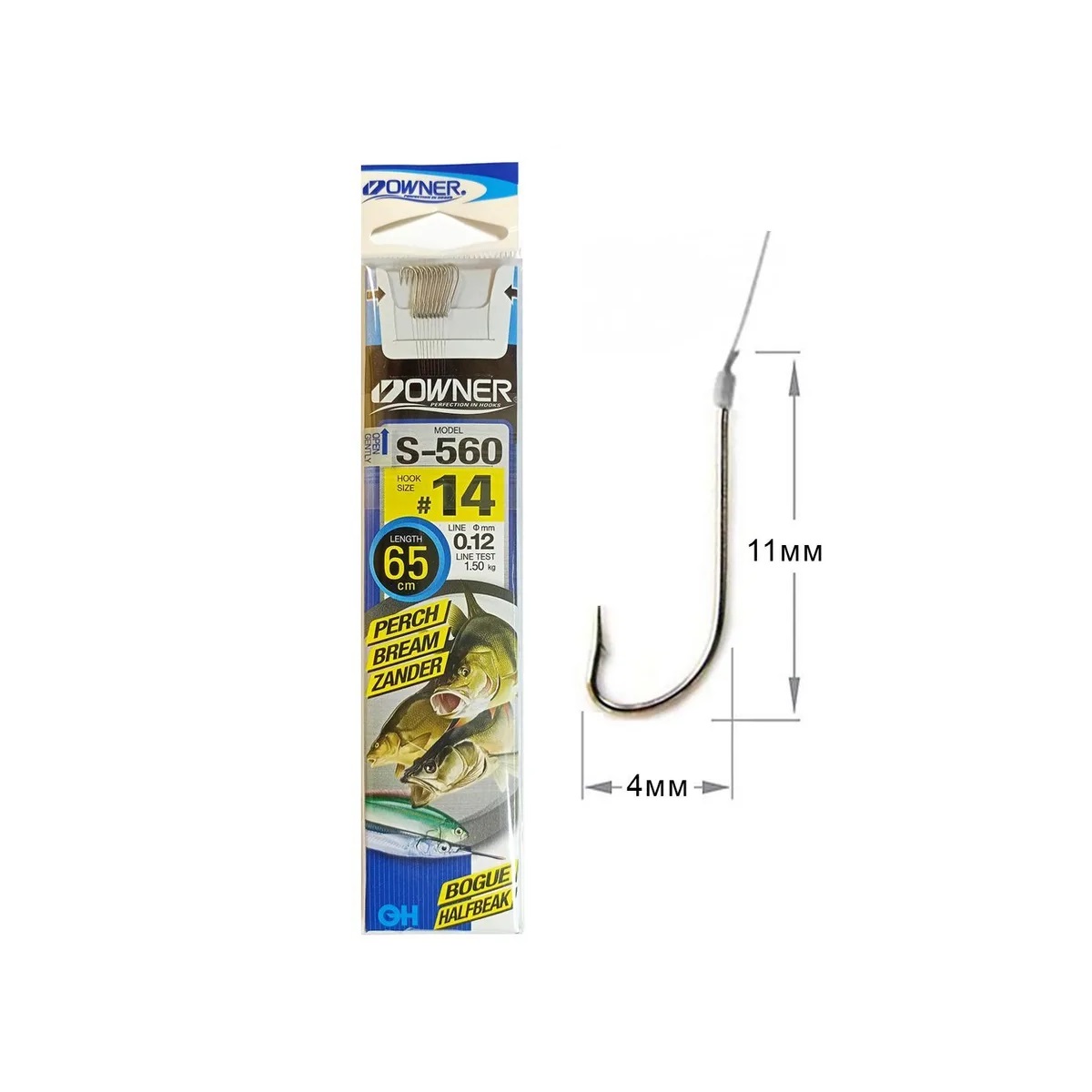 Крючки одинарные Owner S-560 (56916) на поводке №14 (9шт)