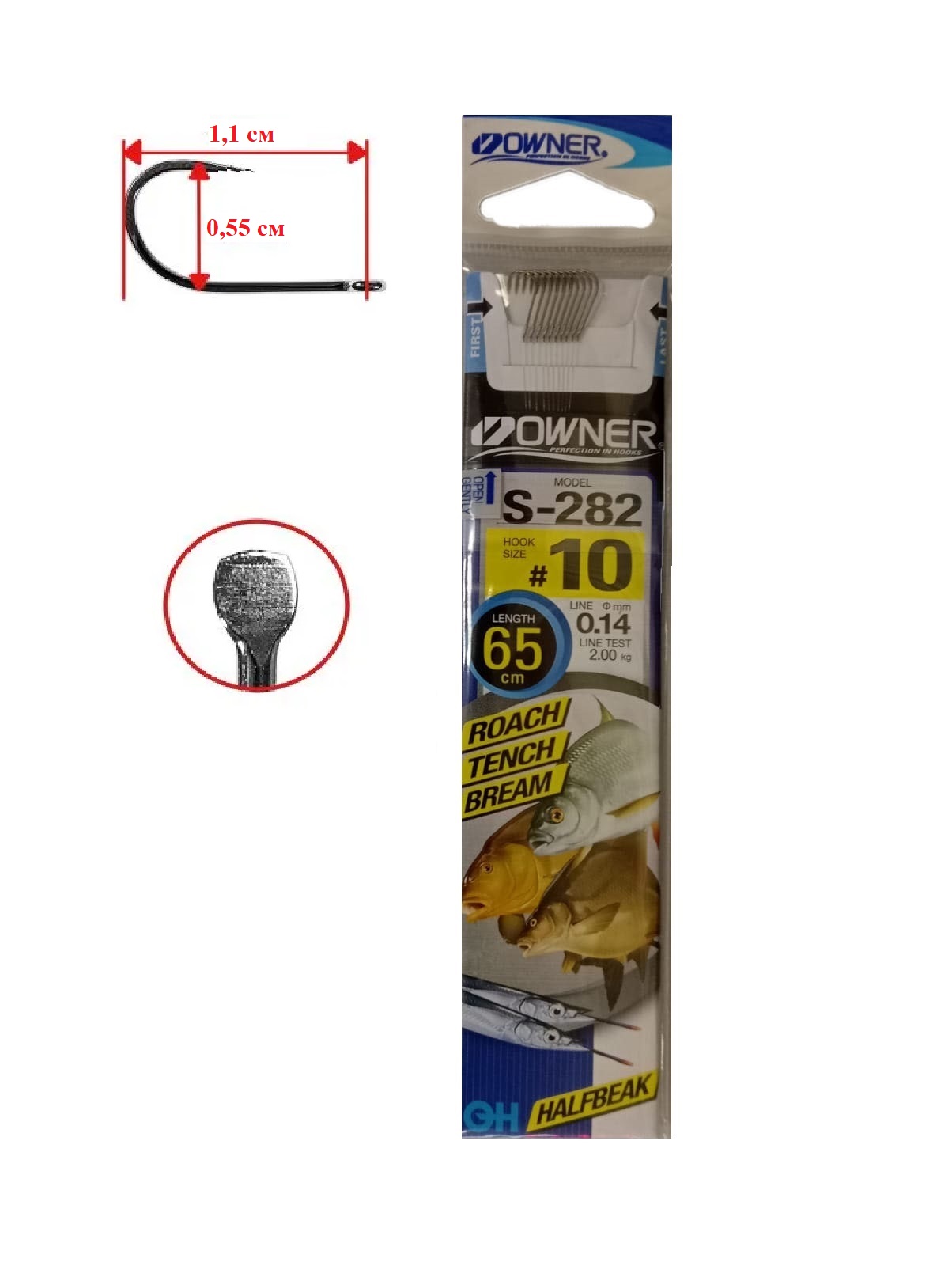 Крючки одинарные Owner S-282 (56910) Brown на поводке №10 (10шт)