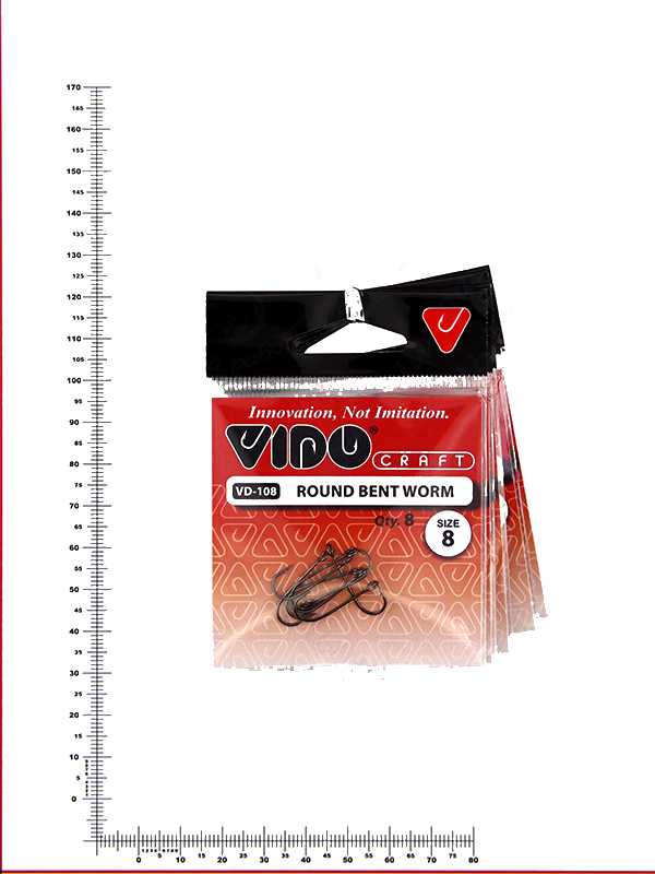 Крючки одинарные VIDO Round Bent Worm VD-108 большое ушко №8 (8шт) черные, никелевые