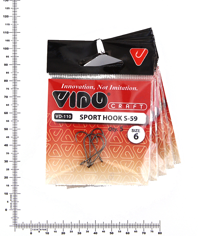 Крючки одинарные VIDO Sport Hook S-59 VD-110 большое ушко №6 (5шт) черные, никелевые