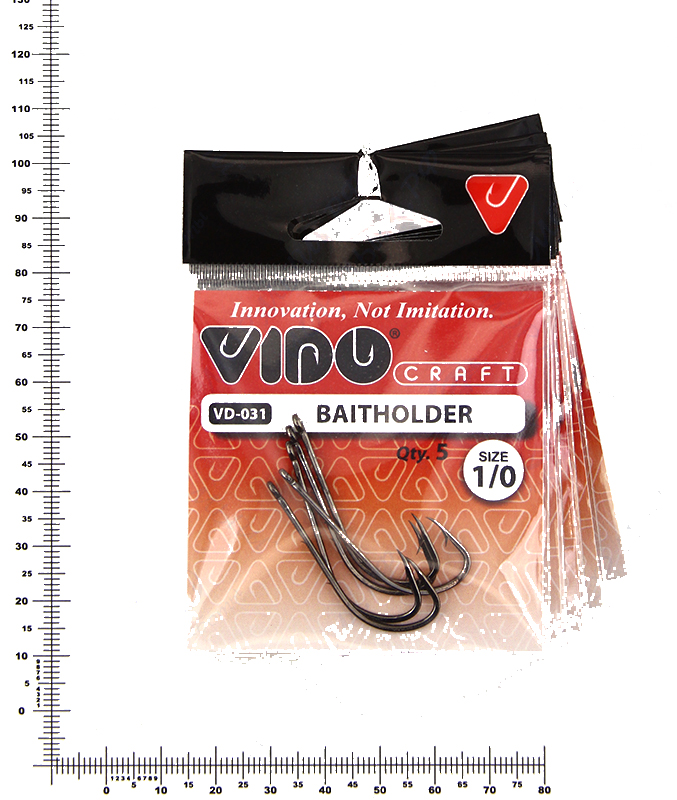 Крючки одинарные VIDO Baitholder VD-031 №1/0 (5шт) черные, никелевые