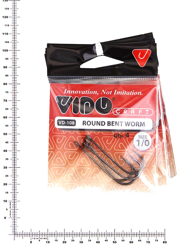 Крючки одинарные VIDO Round Bent Worm VD-108 большое ушко №1/0 (4шт) черные, никелевые