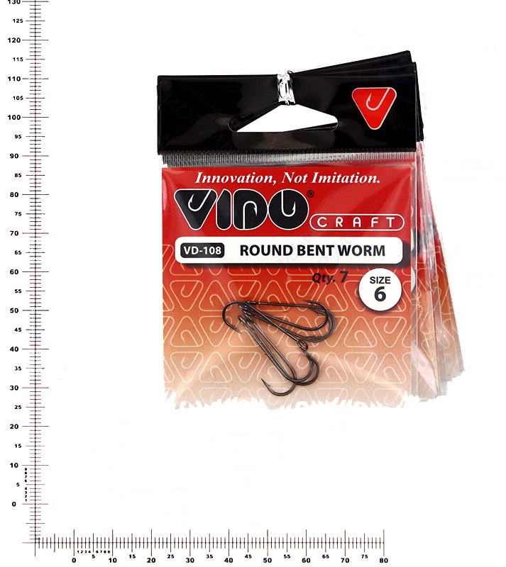 Крючки одинарные VIDO Round Bent Worm VD-108 большое ушко №6 (7шт) черные, никелевые