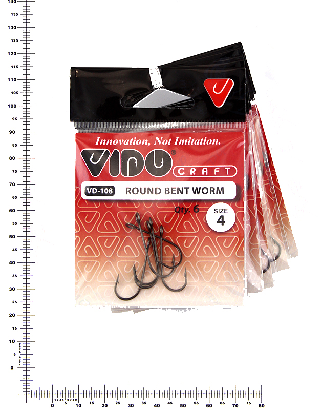 Крючки одинарные VIDO Round Bent Worm VD-108 большое ушко №4 (6шт) черные, никелевые