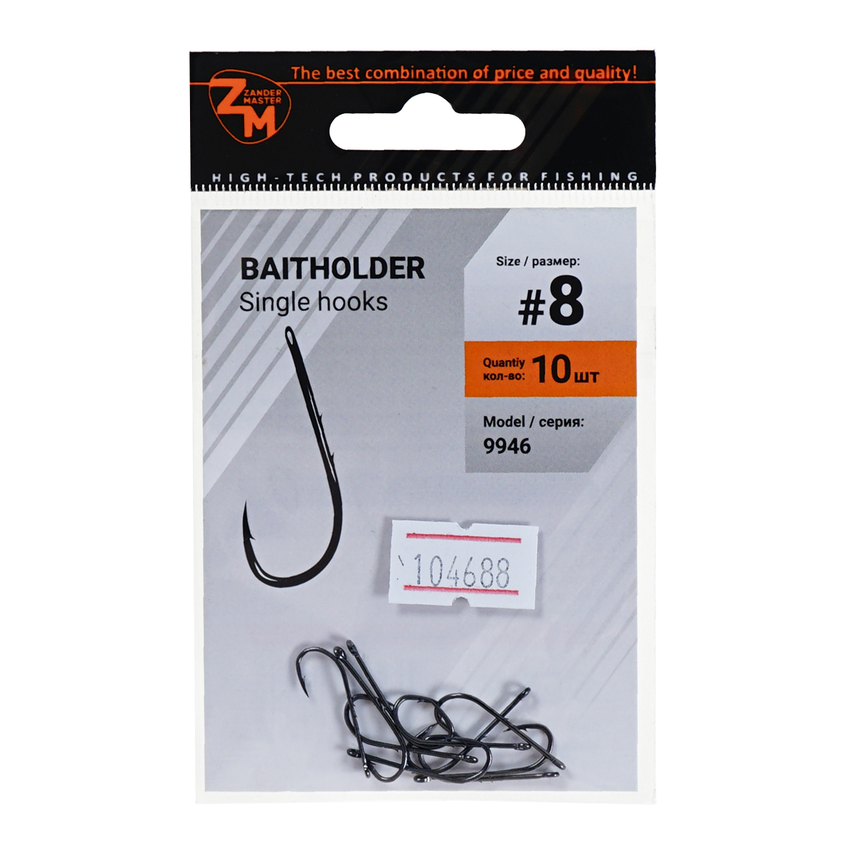 Крючки одинарные Zander Master ZM-9946 Baitholder №8 (10шт)