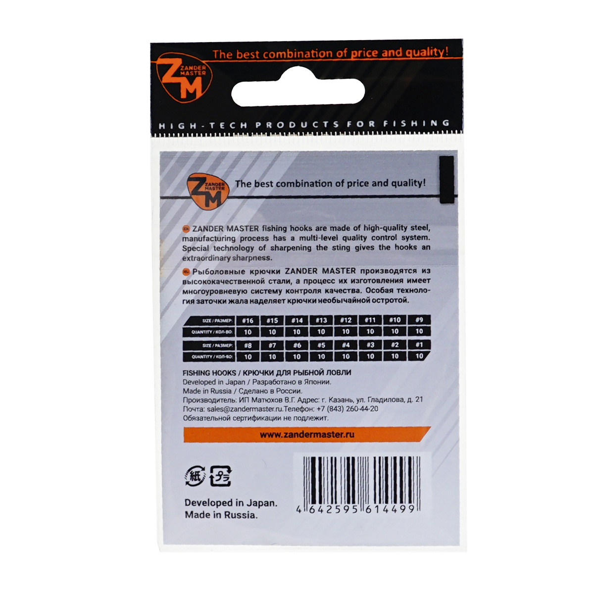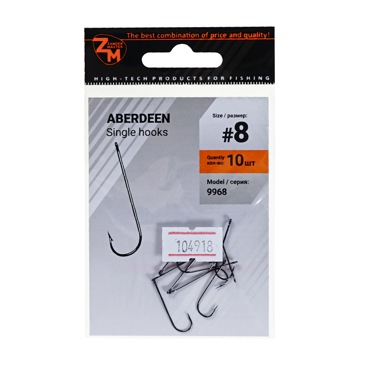 Крючки одинарные Zander Master ZM-9968 Aberdeen №8 (10шт)