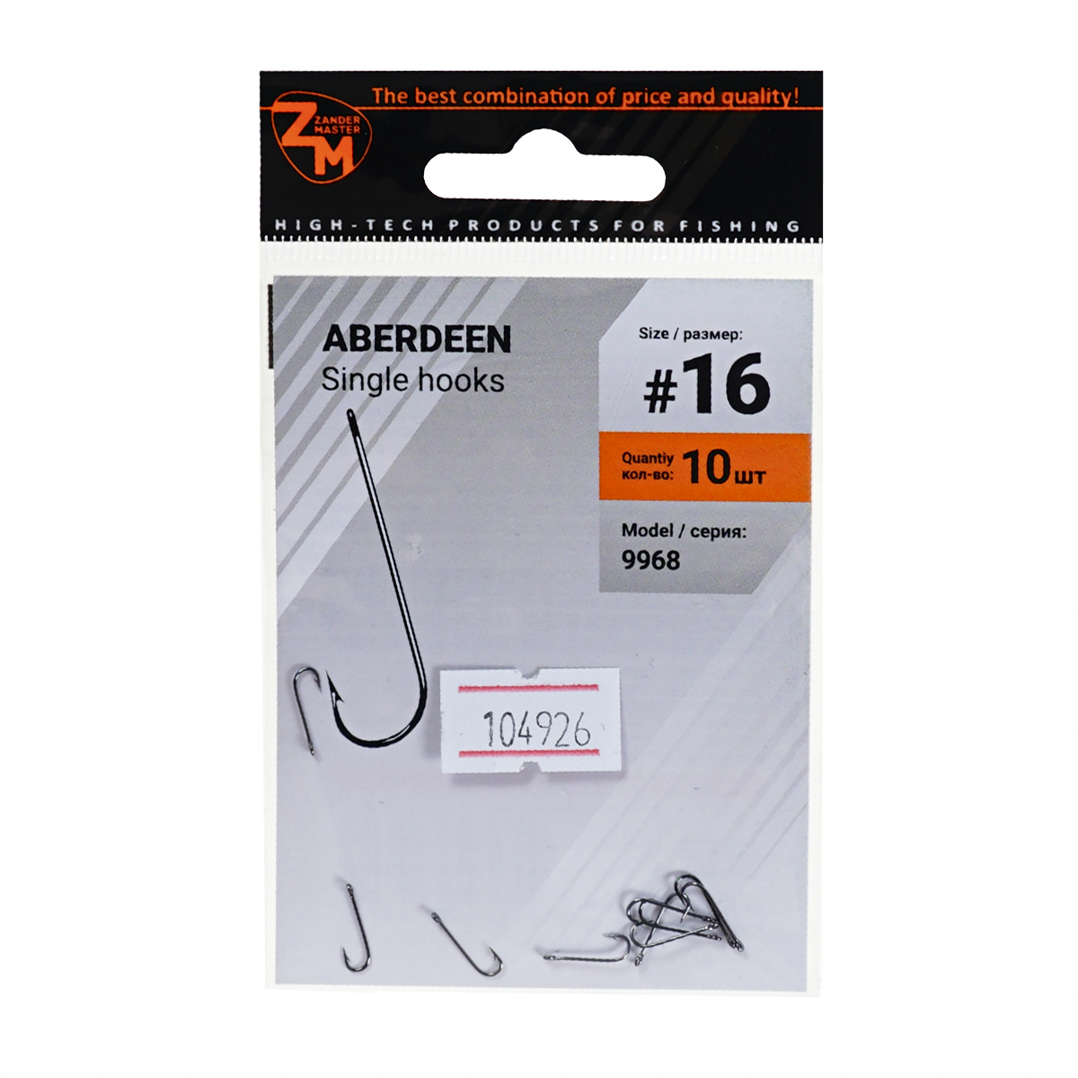 Крючки одинарные Zander Master ZM-9968 Aberdeen №16 (10шт)