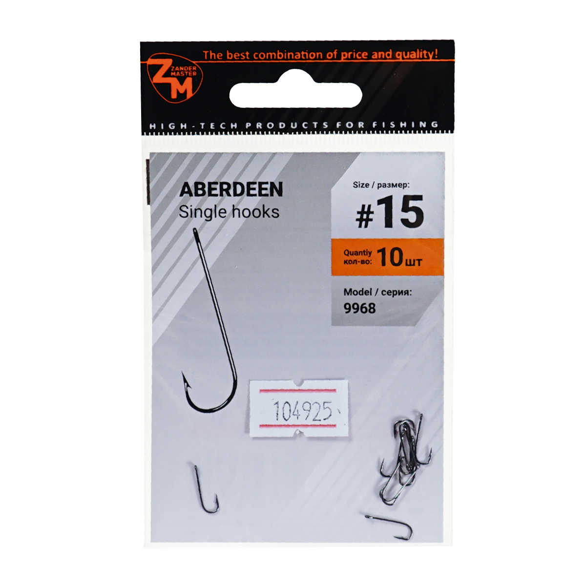 Крючки одинарные Zander Master ZM-9968 Aberdeen №15 (10шт)