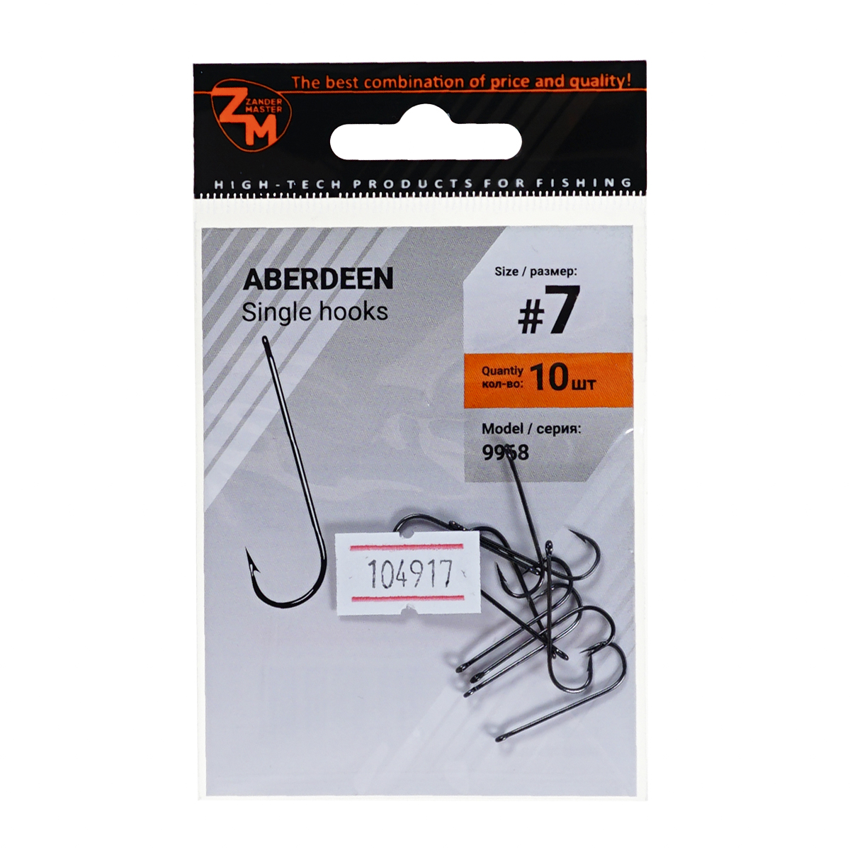 Крючки одинарные Zander Master ZM-9968 Aberdeen №7 (10шт)