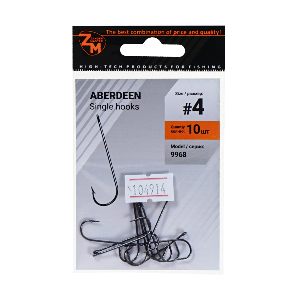 Крючки одинарные Zander Master ZM-9968 Aberdeen №4 (10шт)