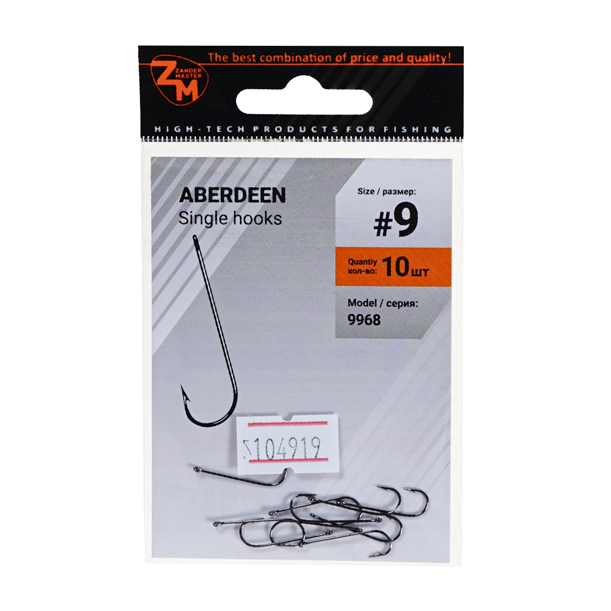 Крючки одинарные Zander Master ZM-9968 Aberdeen №9 (10шт)