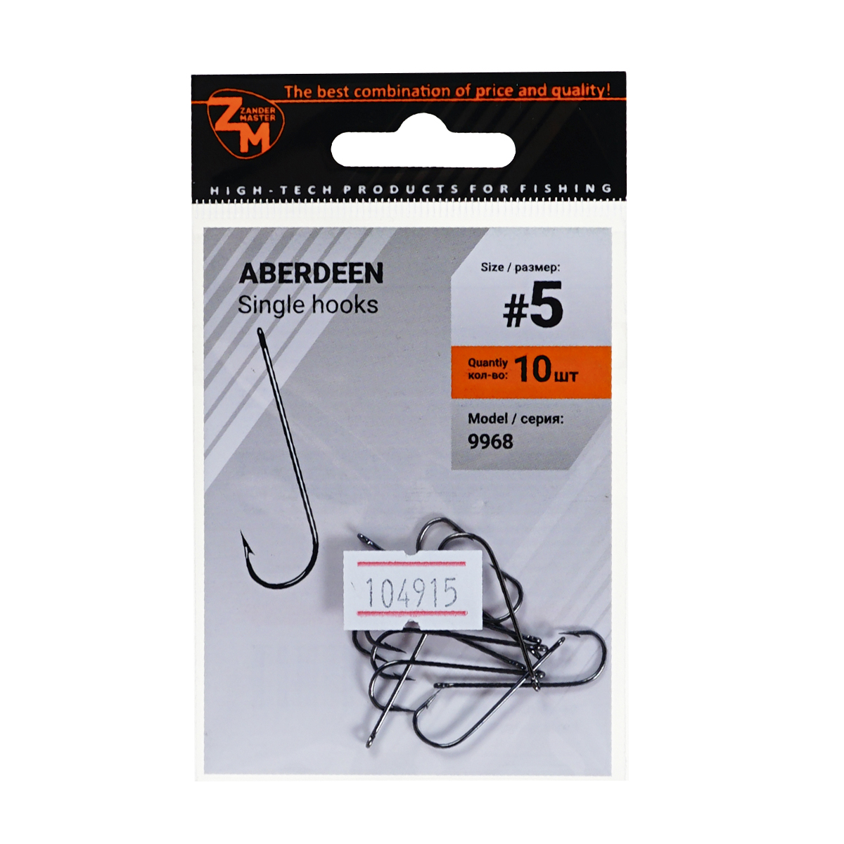 Крючки одинарные Zander Master ZM-9968 Aberdeen №5 (10шт)