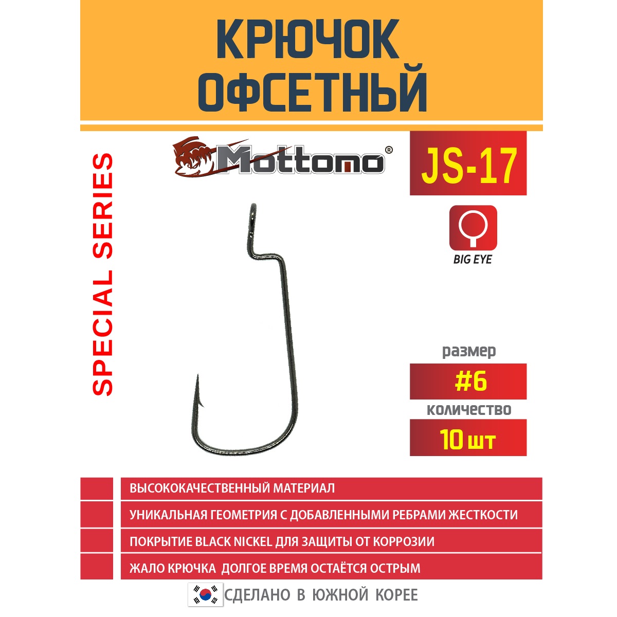 Крючки офсетные Mottomo JS-17 №6 (10шт)