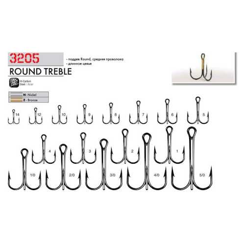 Крючок тройник Cannelle 3205 N круглый поддев, стандартный тройник, средняя проволока №10 никелевый