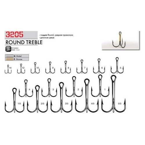 Крючок тройник Cannelle 3205 N круглый поддев, стандартный тройник, средняя проволока №7 никелевый