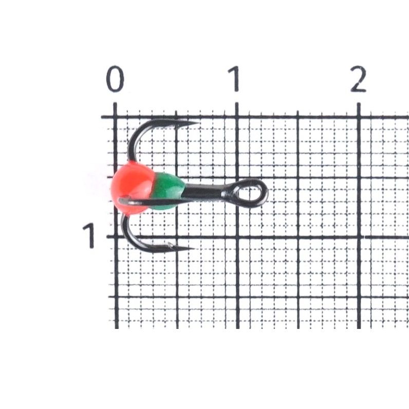 Крючок тройник На рыбалку и точка с обливкой №14 красный, зеленый
