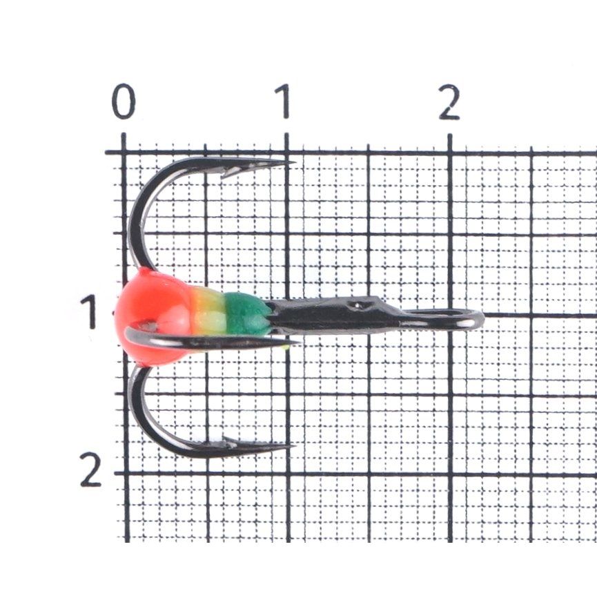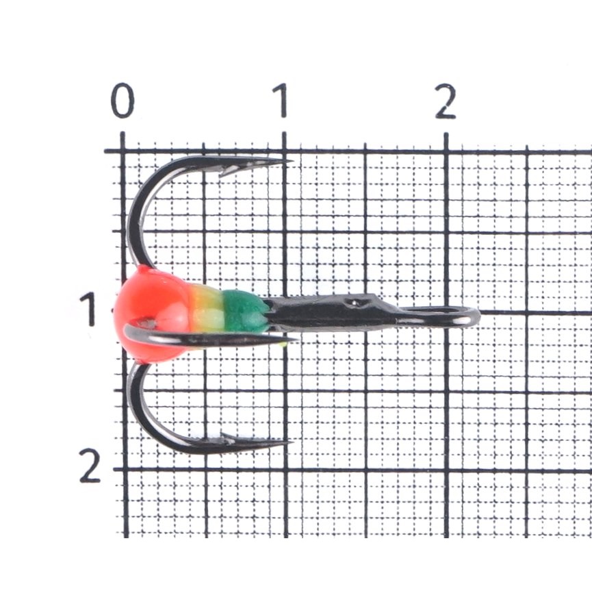 Крючок тройник На рыбалку и точка с обливкой №4 красный, желтый, зеленый