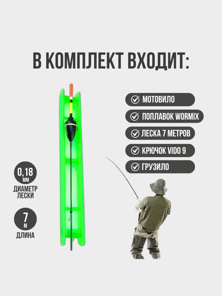 Удочка в сборе Бадис (поплавок Wormix 1,5гр, крючок №9, леска 7м)