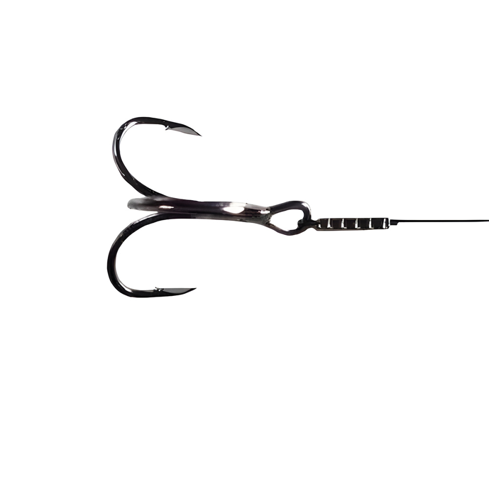 Оличительная черта именно этой серии тройников - загнутое внутрь очень острое жало крючков. Как следствие, это одни из самых (если не самые) зацепистых крючков, сбросить которые рыбе гораздо труднее, чем другие. Кроме того, жало крючка не просто заточено, как у других крючков, оно особым образом сформировано и в разрезе состоит как бы из трех продольных направляющих. Это снижает общую поперечную площадь жала крючка, что в свою очередь позволяет проще просекать "бронированную" пасть хищника.