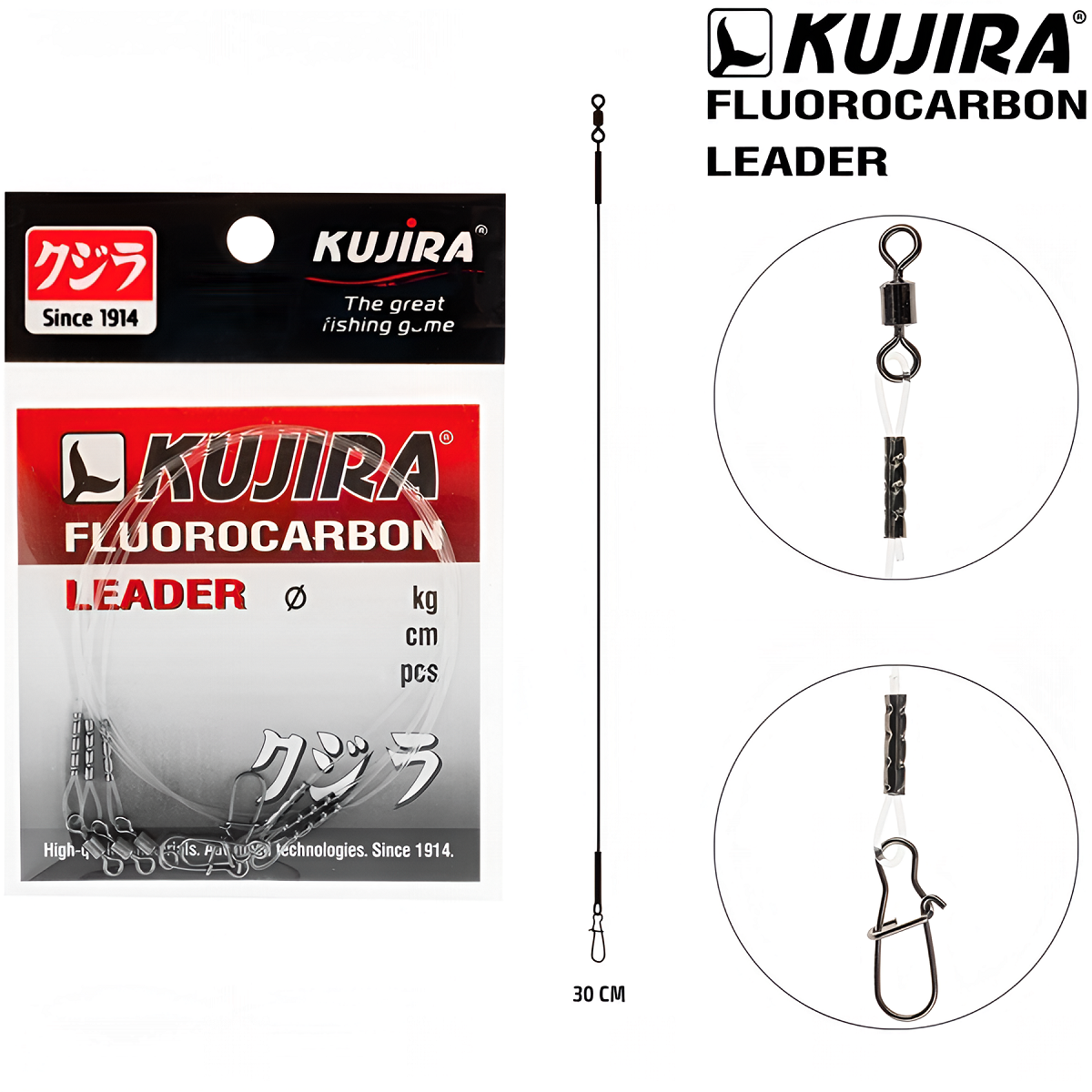 Поводки Kujira флюорокарбоновые 30см 0,60мм 12кг (3шт)