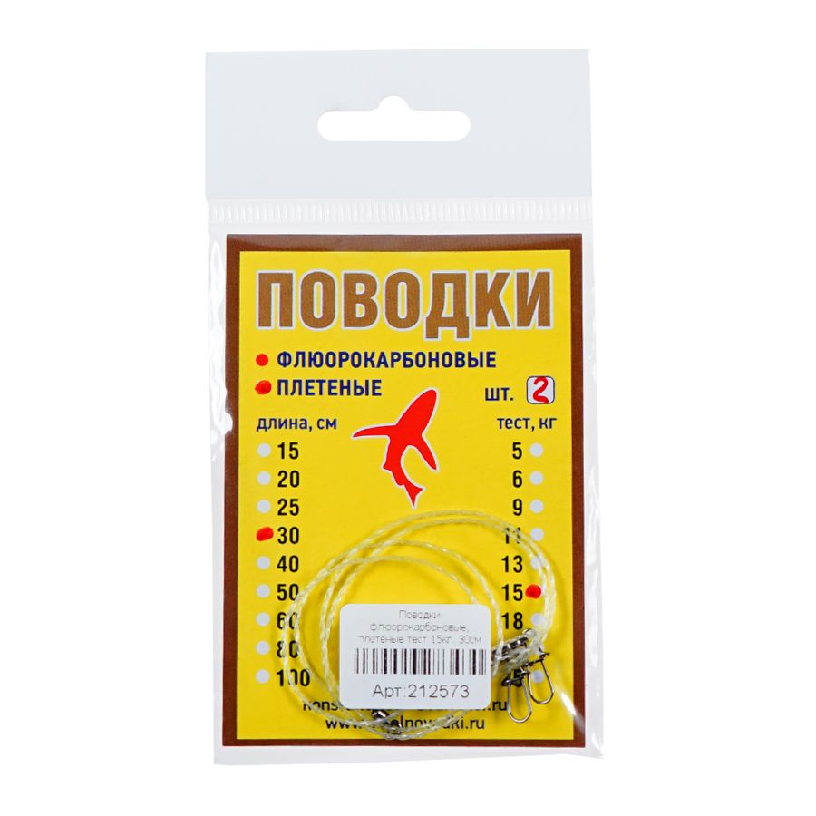 Сбалансированные параметры под щуку, судака и окуня — длина 30 см оптимально защищает от среза при атаке спереди и не «глушит» игру приманки; разрывная нагрузка 15 кг дает запас прочности для силовых подсечек и вываживания в траве и на ракушечнике; упаковка 2 шт удобна для быстрой замены на рыбалке без лишнего веса в коробке.