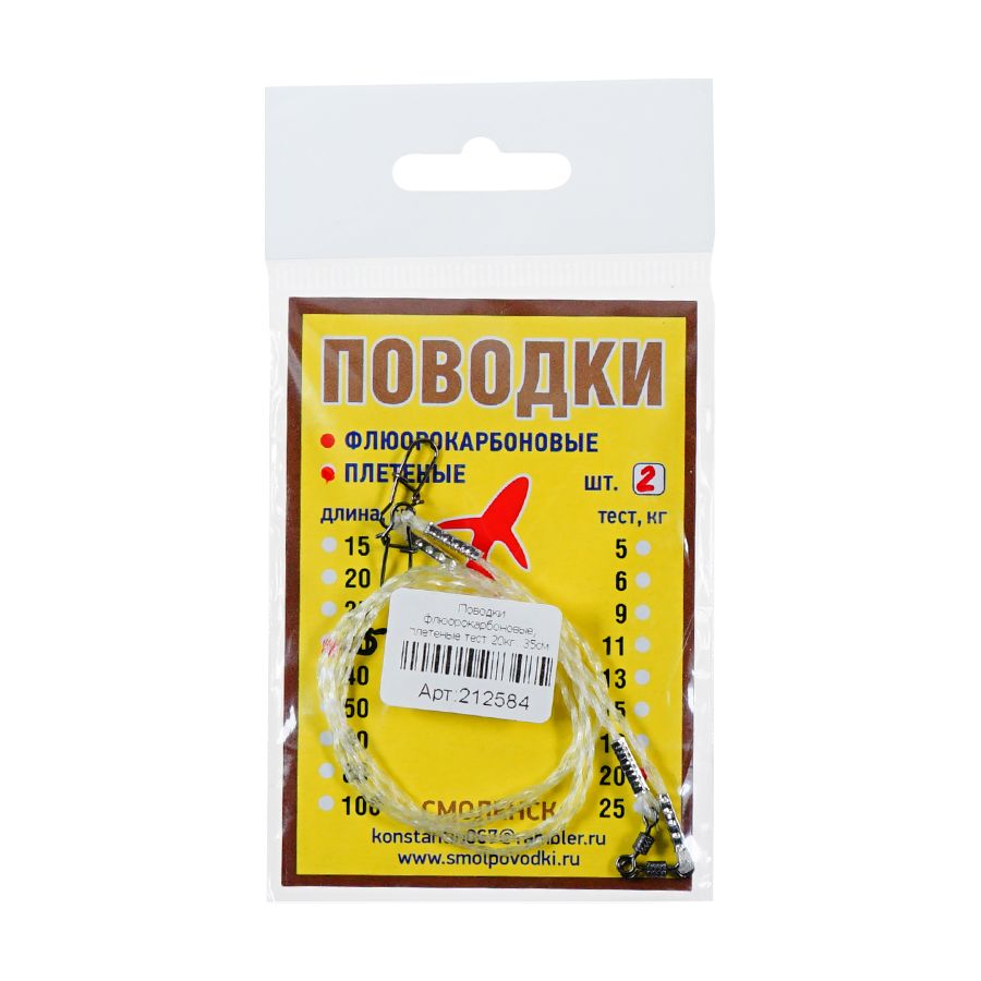Поводки флюорокарбоновые, плетеные 35см 20кг (2шт)