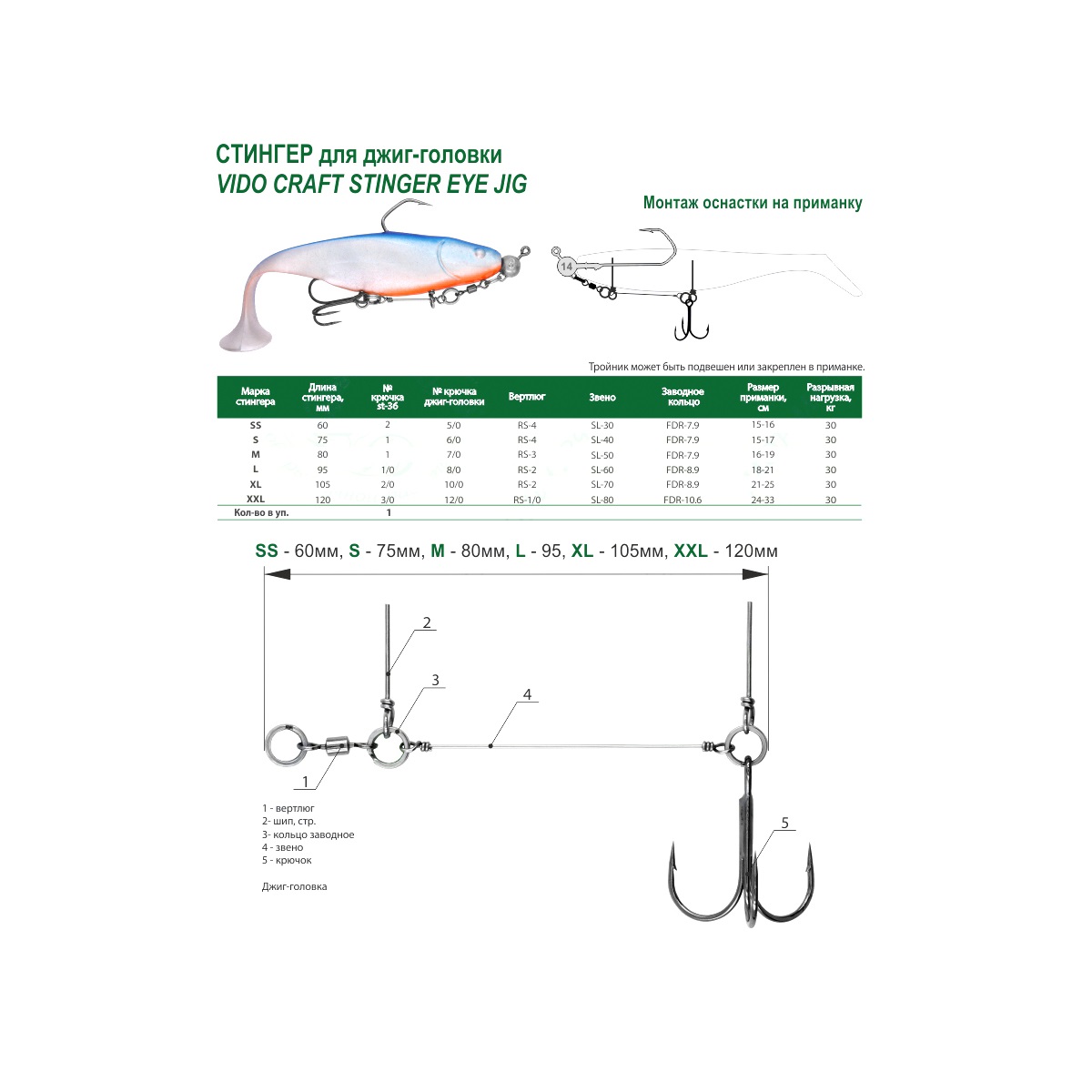 Оснастка стингер Vido Craft Stinger Eye Jig 8см для джиг-головок 7/0