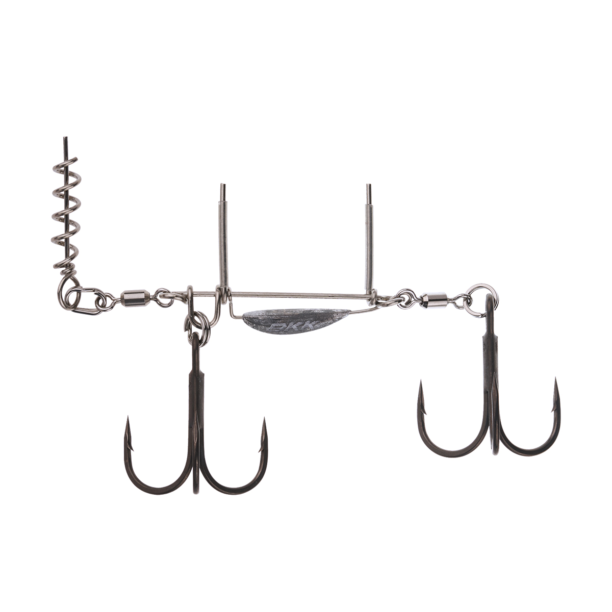 Модель оборудована высококачественными тройниками BKK Spear 21, отличающимися повышенной остротой и прочностью. Все металлические компоненты произведены из устойчивой к коррозии нержавеющей стали, что гарантирует долговечность изделия вне зависимости от условий эксплуатации. Штифты оснастки покрыты специальным пластиком, улучшающим фиксацию в теле силиконовой приманки. Дополнительно конструкция снабжена сверхпрочными вертлюгами, исключающими вероятность выхода снасти из строя именно на этом участке.