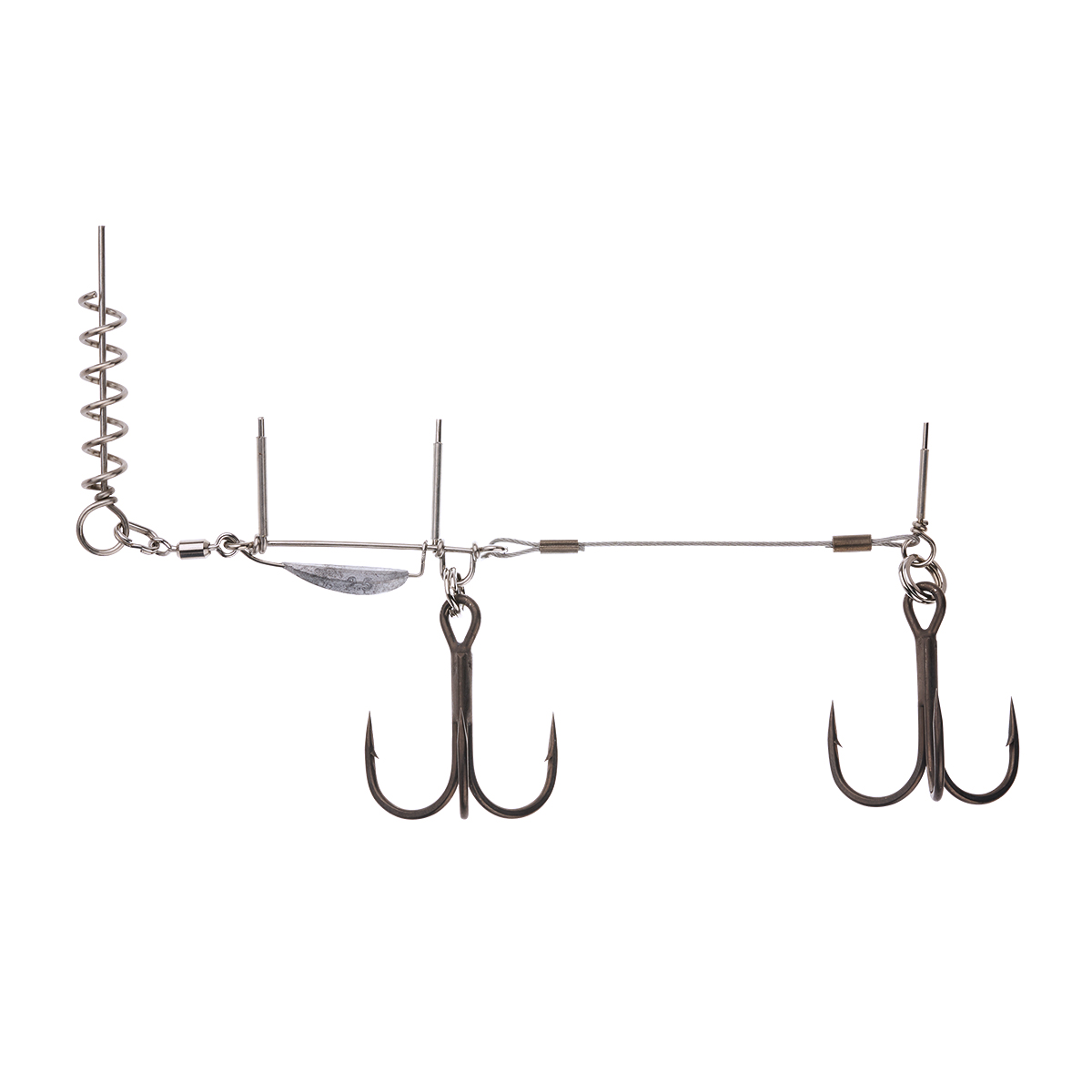 Модель оборудована высококачественными тройниками BKK Spear 21, отличающимися повышенной остротой и прочностью. Все металлические компоненты произведены из устойчивой к коррозии нержавеющей стали, что гарантирует долговечность изделия вне зависимости от условий эксплуатации. Штифты оснастки покрыты специальным пластиком, улучшающим фиксацию в теле силиконовой приманки. Дополнительно конструкция снабжена сверхпрочными вертлюгами, исключающими вероятность выхода снасти из строя именно на этом участке.