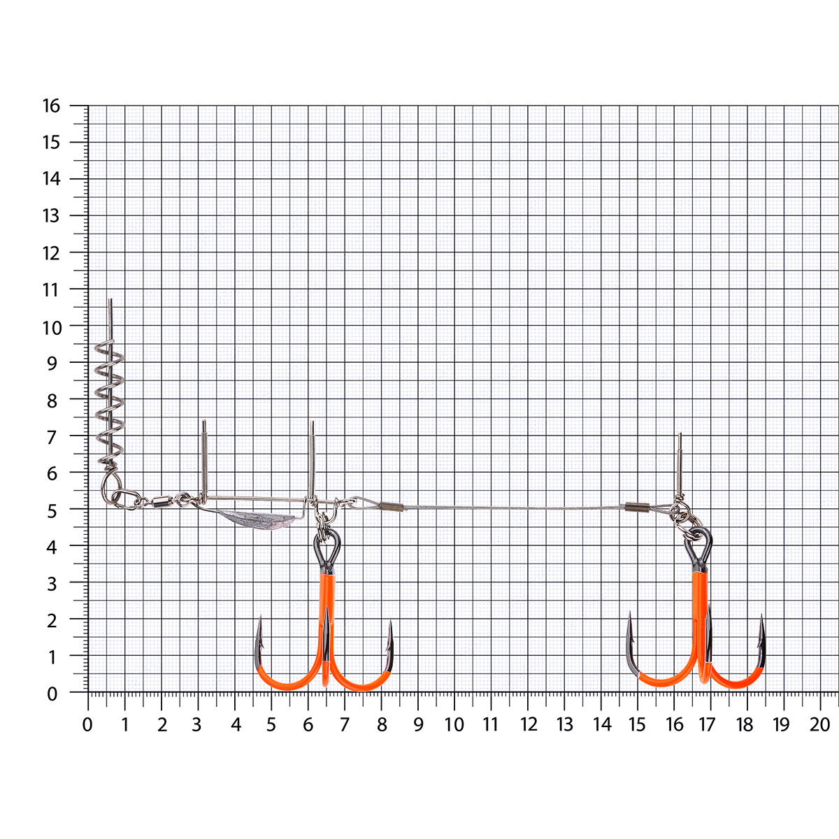 Оснастка стингер BKK BB Trigger 21-UVO (Stinger Rig) крючок №4/0 30+см для силиконовых приманок, с оранжевым UV покрытием (A-EU-0122)