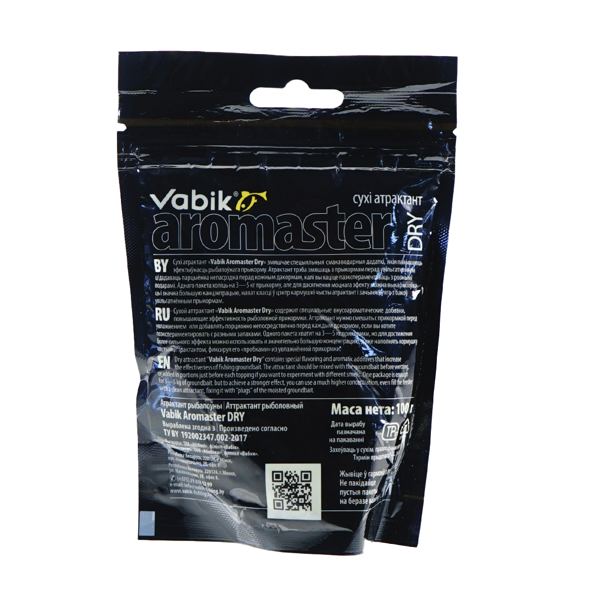 Особенностью аттрактантов Vabik Aromaster Dry является то, что они нейтральны в плане механики прикормки, т.е. не склеивают, но и не разрыхляют смесь, поэтому можно смело добавлять их даже в значительных количествах.