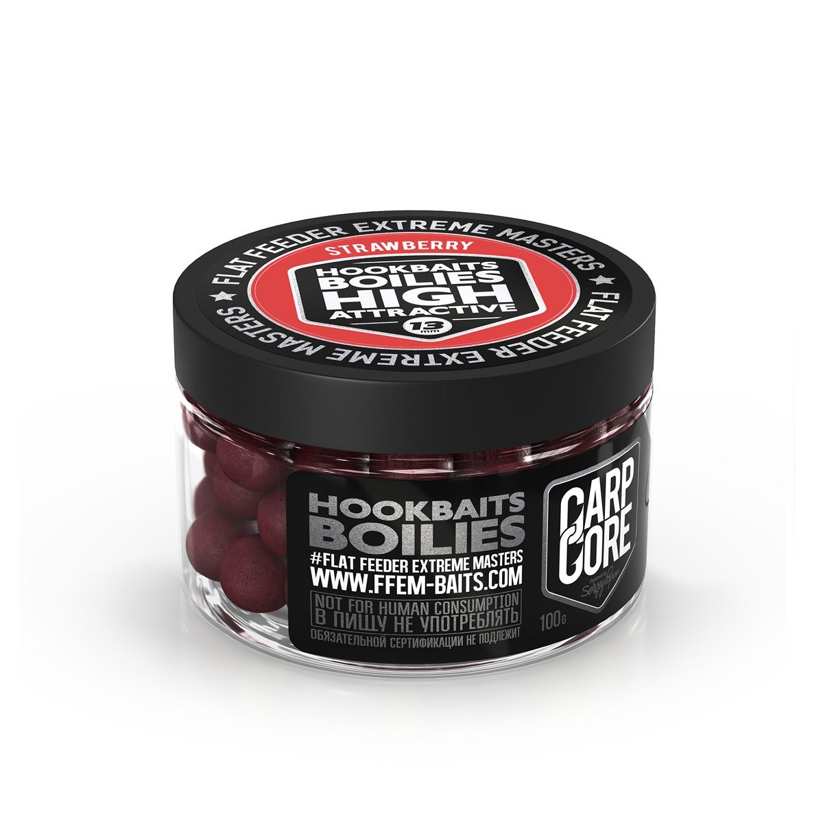 Бойлы Ffem Hookbaits Boilies Strawberry пылящие, вареные 13мм 100гр Клубника, в банке