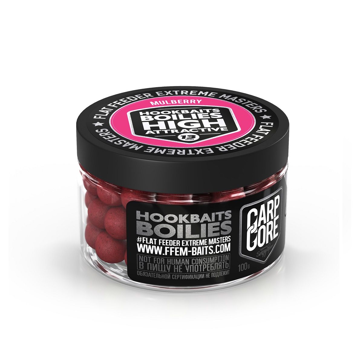 Бойлы Ffem Hookbaits Boilies Mulberry 100гр 13мм пылящие, вареные, Шелковица, в банке