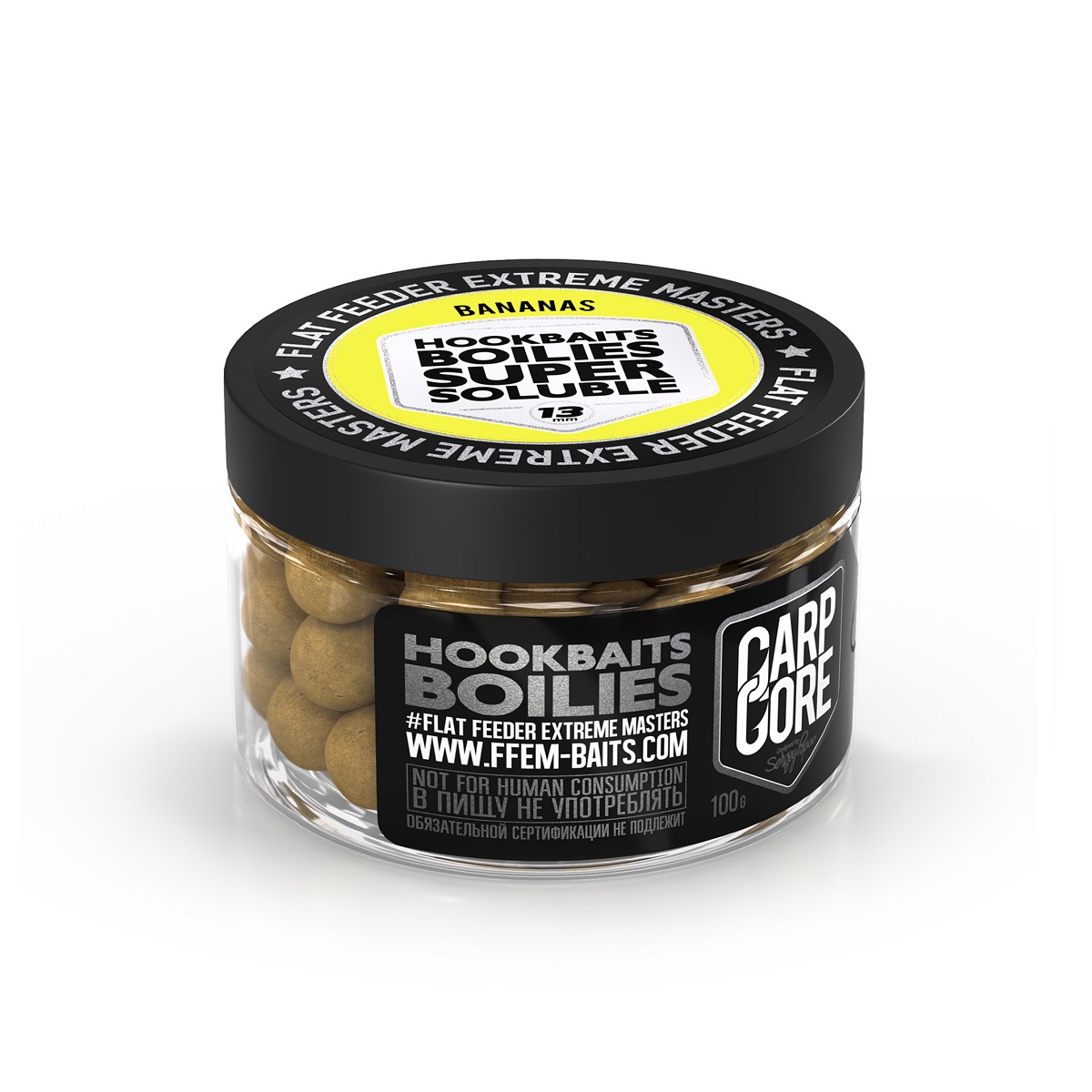 Бойлы Ffem Super Soluble Boilies Bananas пылящие 13мм 100гр Банан, в банке