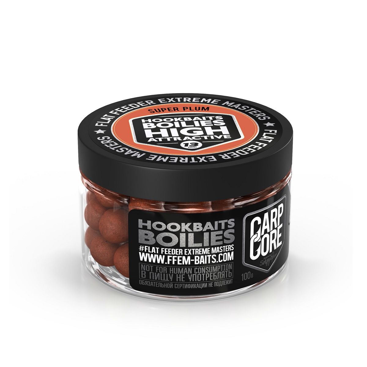 Бойлы Ffem Hookbaits Boilies Super Plum 100гр 13мм пылящие, вареные, Супер Слива, в банке