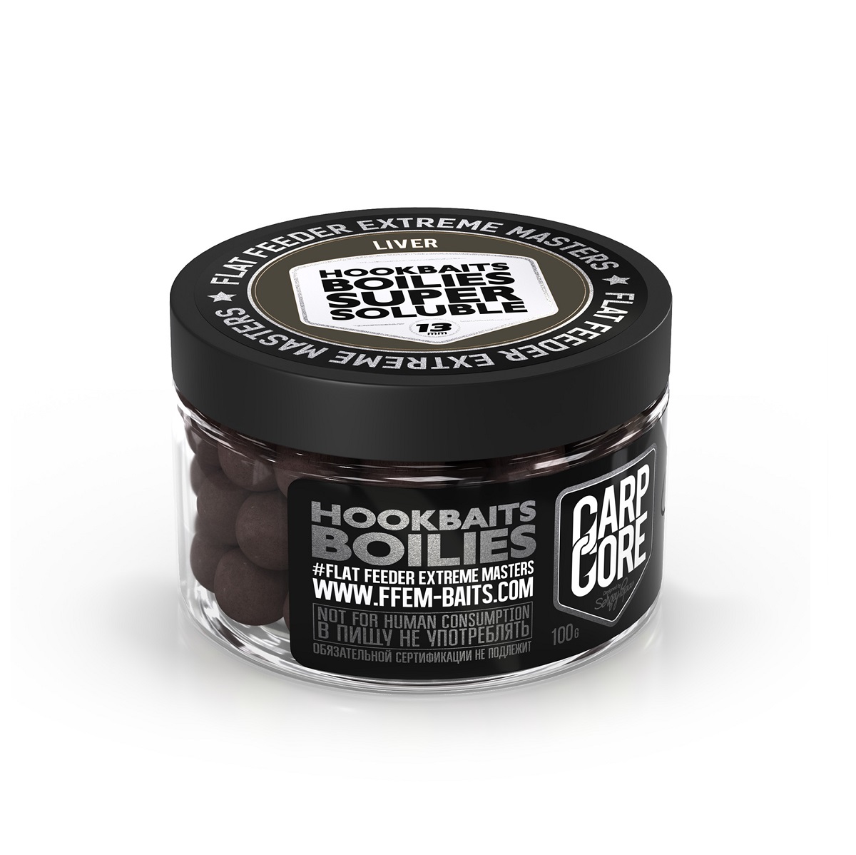 Бойлы Ffem Super Soluble HNV Boilies Liver пылящие 13мм 100гр Печень, в банке