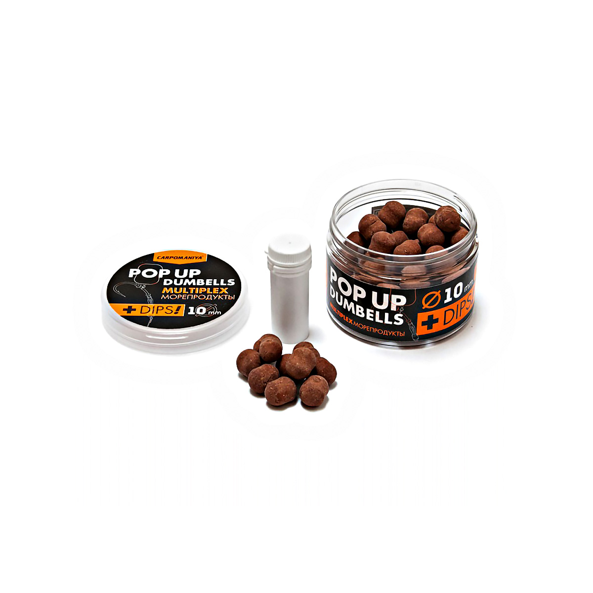 Бойлы Карпомания Pop-Up Dumbells+Dips Multiplex плавающие 10мм 60гр Морепродукты, в банке