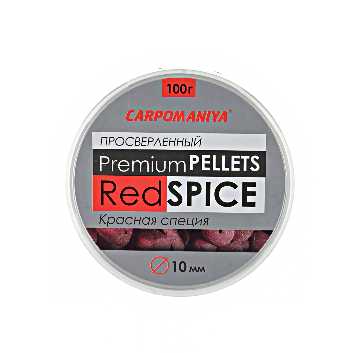 Пеллетс Карпомания Premium насадочный, просверленный 10мм 100гр Красная Специя, в банке