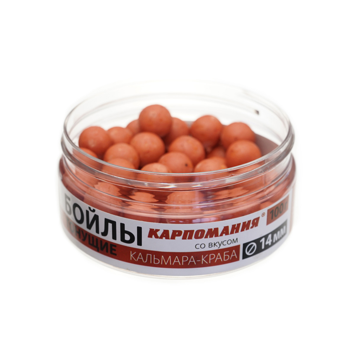 Бойлы Карпомания насадочные, тонущие 14мм 100гр Кальмар-Краб, в банке