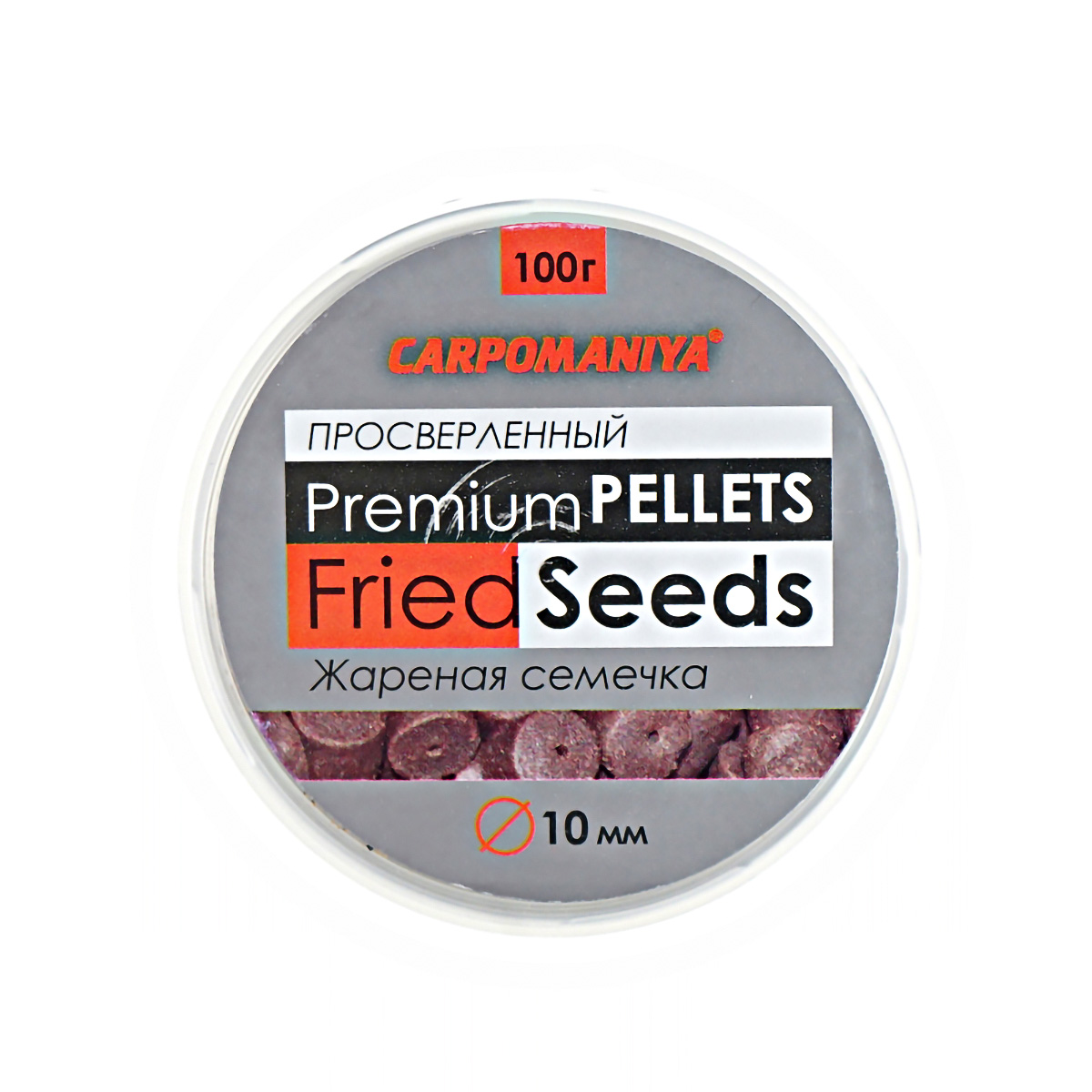Пеллетс Карпомания Premium насадочный, просверленный 10мм 100гр Жареная Семечка, в банке