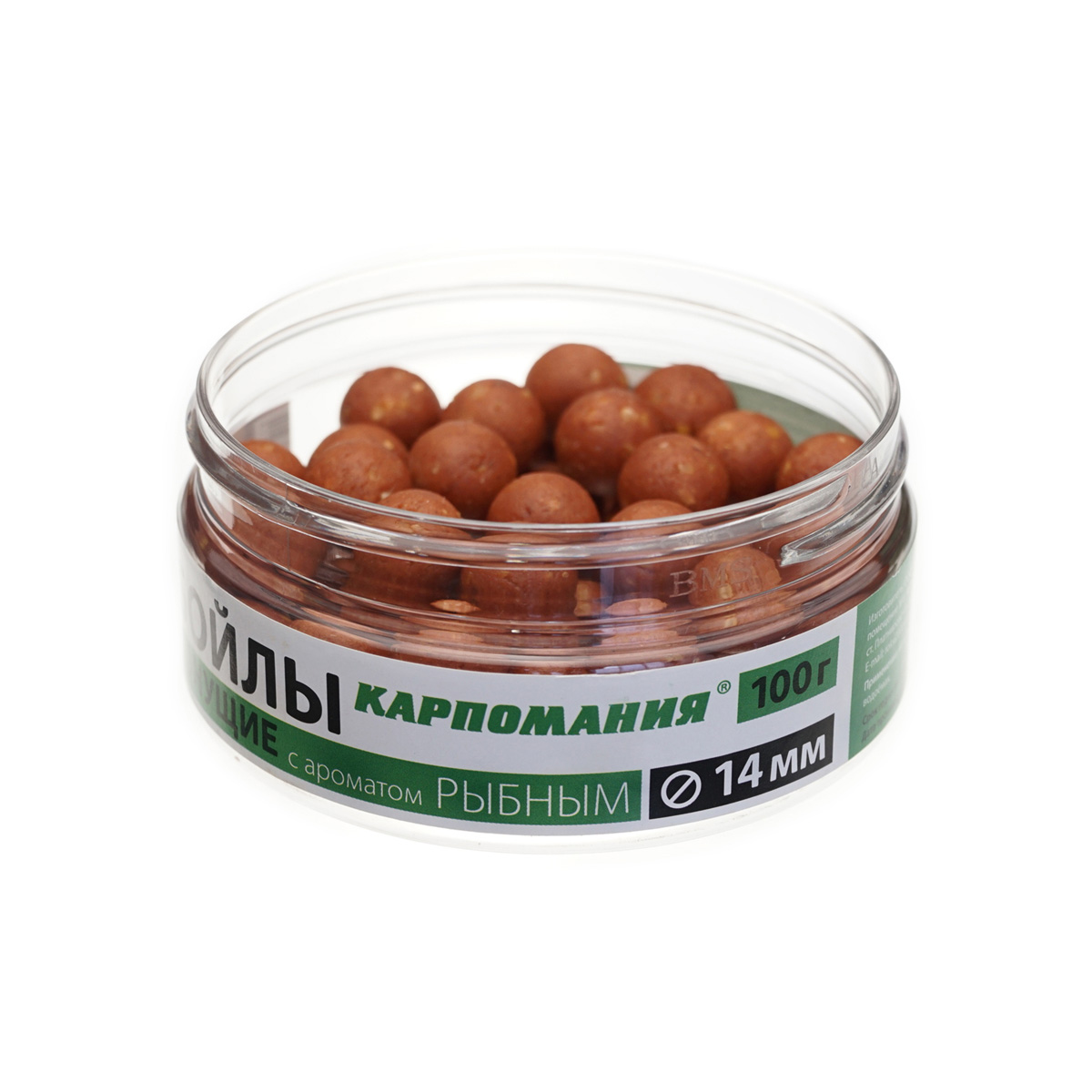 Бойлы Карпомания насадочные, тонущие 14мм 100гр Рыба, в банке
