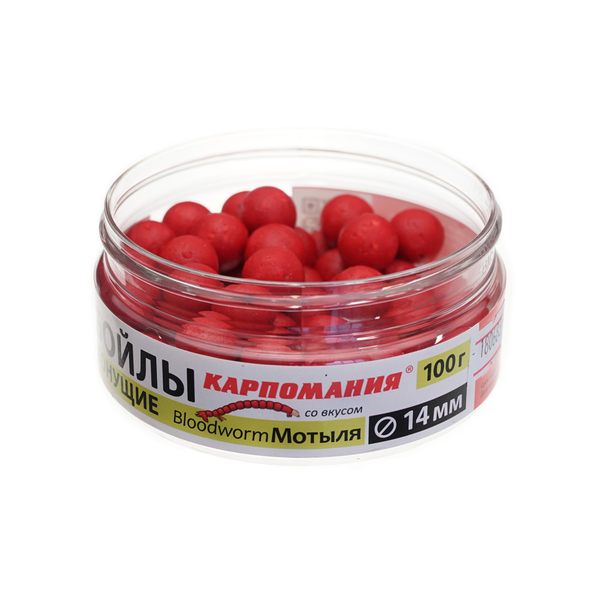 Бойлы Карпомания насадочные, тонущие 14мм 100гр Мотыль, в банке