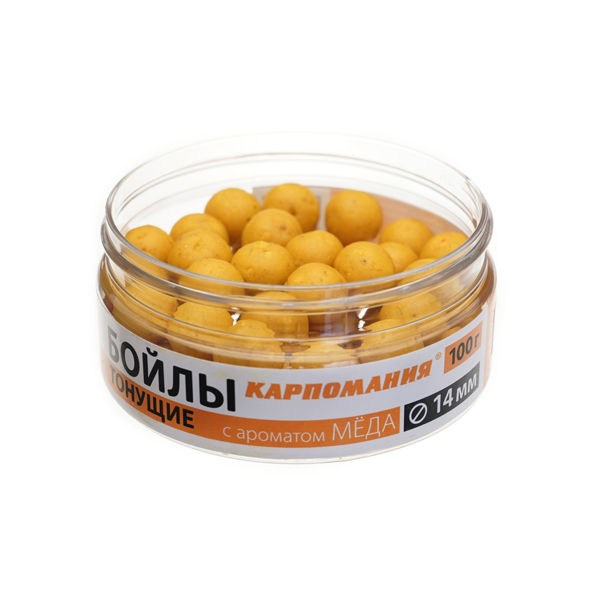 Бойлы Карпомания насадочные, тонущие 14мм 100гр Мед, в банке